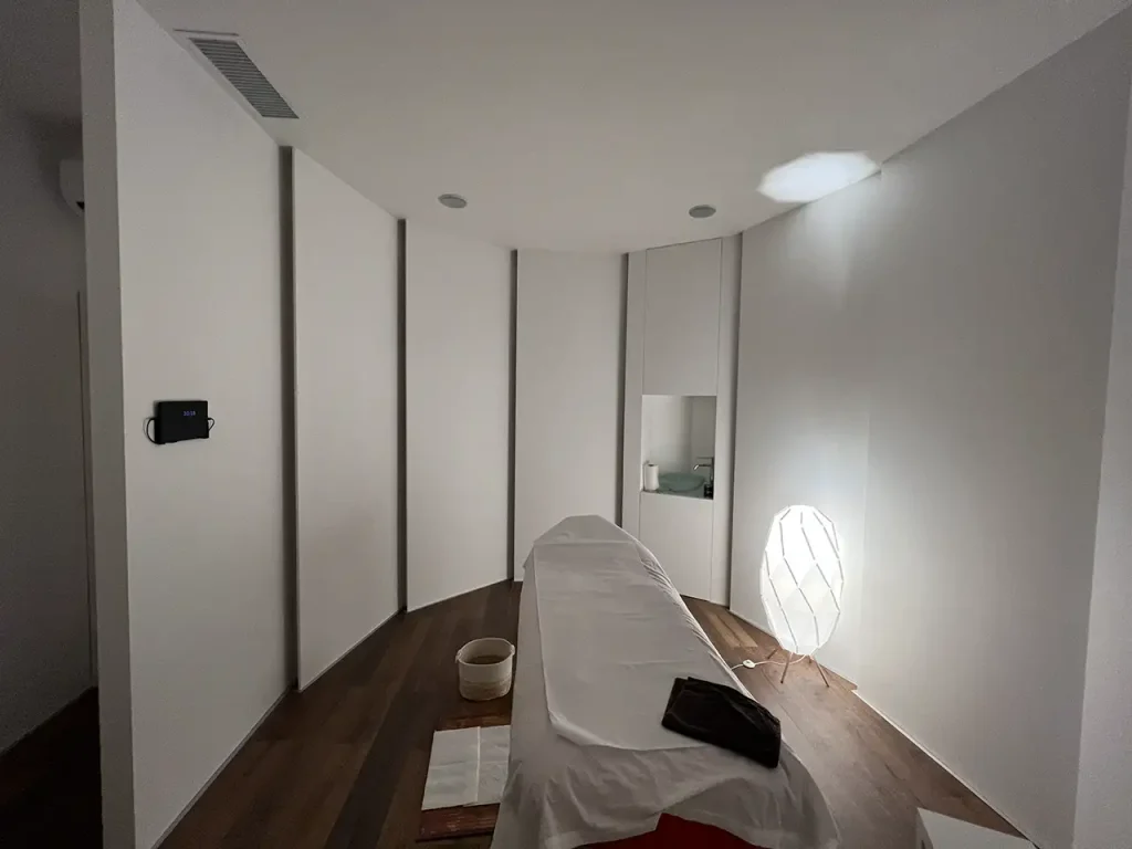 L’obiettivo era creare un ambiente per i trattamenti con comfort luminoso, acustico e termico ottimali, migliorando l’esperienza dei clienti e la qualità del lavoro degli operatori. Ho progettato un concept che accoglie le persone attraverso l’architettura e la cura dello spazio.